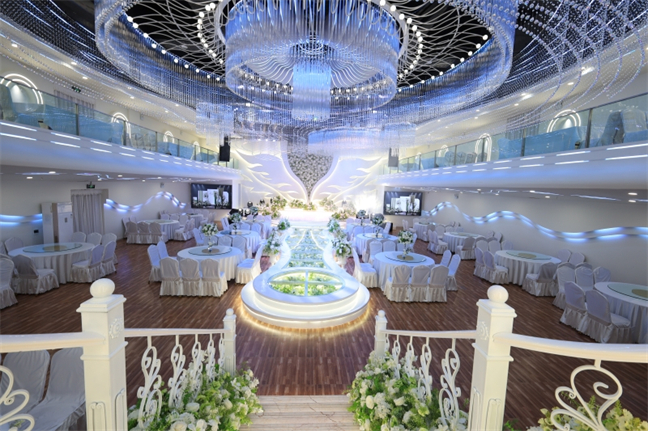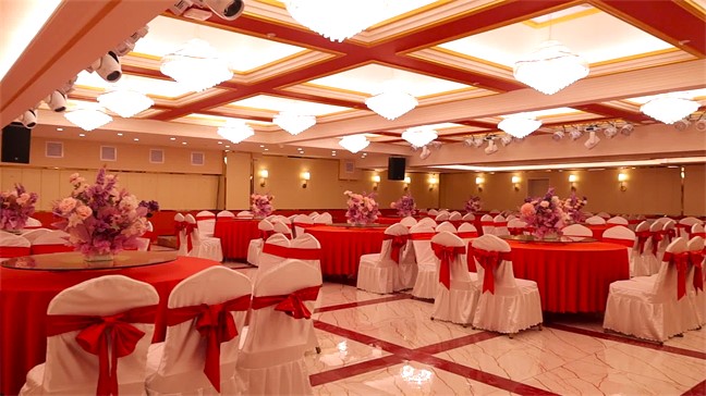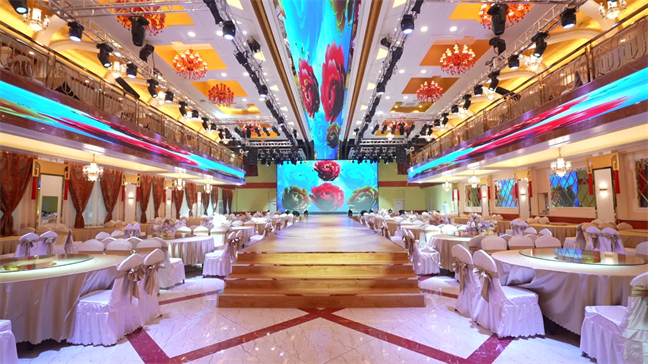 皇宮廳—金碧輝煌、皇宮式裝修,面積1038㎡,層高8.6米,配備愛(ài)情階梯、軌道威亞、二層觀禮臺(tái)、浪漫燈光秀、旋轉(zhuǎn)升降舞臺(tái)、頭頂天幕連接開(kāi)合大屏。可承接50桌的大型宴會(huì),也可舉辦600人的大型會(huì)議;還可用作會(huì)展、車(chē)展場(chǎng)地,每逢節(jié)假日還為市民上演文藝節(jié)目。